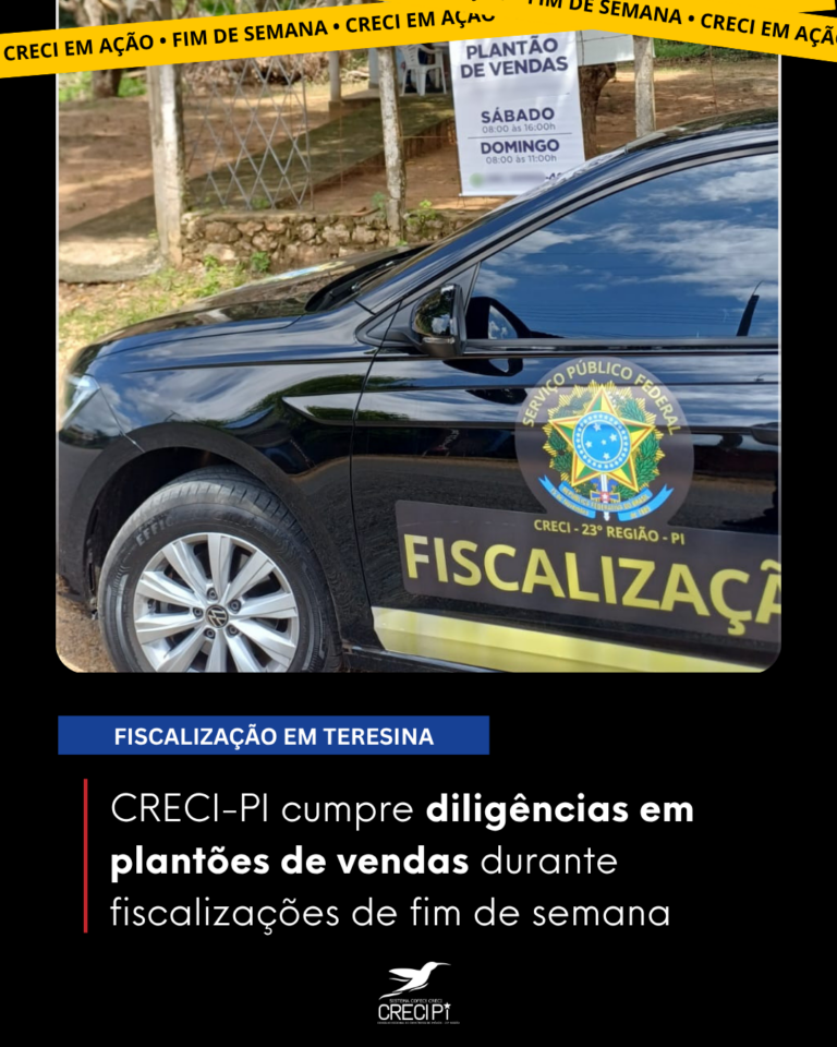 CRECI-PI intensifica fiscalização em plantões de vendas durante o fim de semana em Teresina13 de abril de 2026