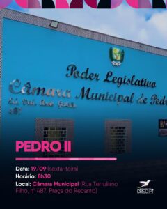 Local: Câmara Municipal de Pedro II (Rua Tertuliano Filho, nº 487, Praça do Recanto)