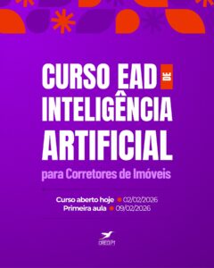 O curso tem início a partir de 9 de fevereiro de 2026 e irá capacitar os corretores a utilizarem a Inteligência Artificial de forma prática no mercado imobiliário, abordando temas como atendimento automatizado por meio de chatbots, análise de mercado e previsão de tendências, além de estratégias de marketing e criação de conteúdos.