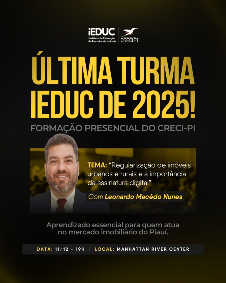 IEDUC promove capacitação sobre gerenciamento de imóveis urbanos e rurais em Teresina; inscrições estão abertas O Conselho Regional de Corretores de Imóveis do Piauí (Creci-PI),...