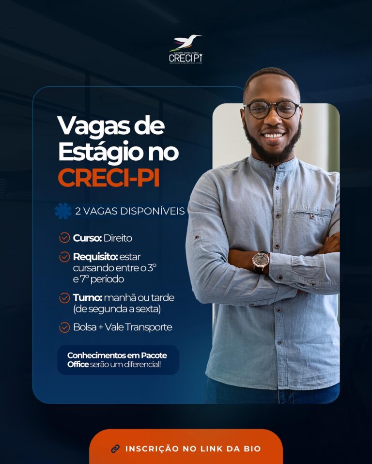 Creci-PI abre processo seletivo para estagiários de Direito O Conselho Regional de Corretores de Imóveis do Piauí (Creci-PI) está com duas vagas abertas para estágio...