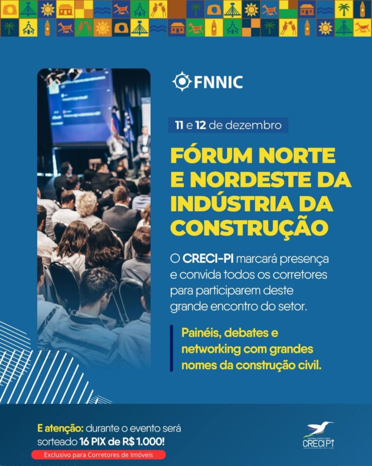 FNNIC 2025: Fórum Norte e Nordeste da Indústria da Construção acontece em Teresina com a presença do CRECI-PI Nos dias 11 e 12 de dezembro,...