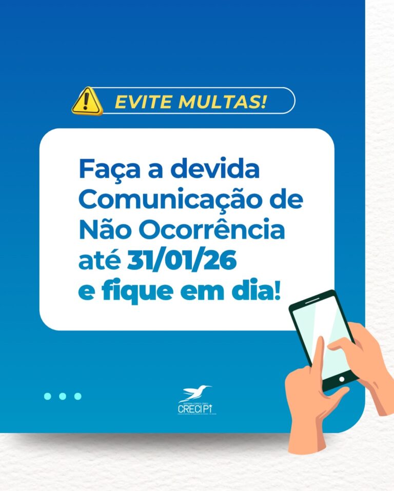 Creci-PI reforça obrigatoriedade da Comunicação de Não Ocorrência e alerta para penalidades em caso de descumprimento O Conselho Regional de Corretores de Imóveis do Piauí...