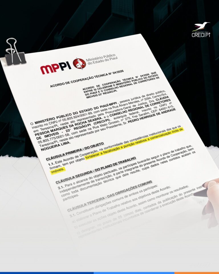 O Conselho Regional de Corretores de Imóveis do Piauí (Creci-PI) e o Ministério Público do Estado do Piauí (MPPI) reafirmaram parceria institucional para intensificar as...