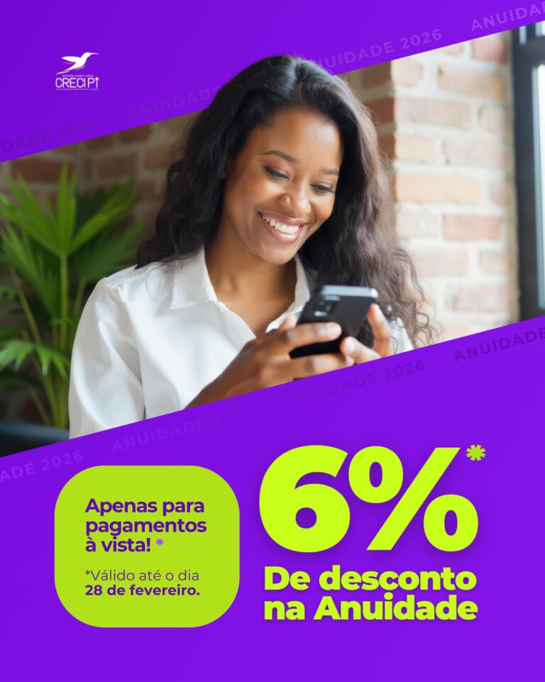 Última semana para garantir 6% de desconto na anuidade 2026 do Creci-PI Os corretores de imóveis do Piauí têm até o dia 28 de fevereiro...