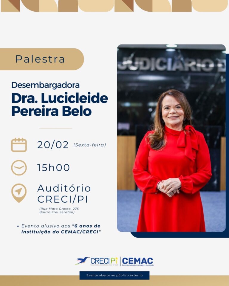 CRECI-PI realiza palestra com a Desembargadora Lucicleide Pereira Belo em comemoração aos 6 anos do CEMAC O Conselho Regional de Corretores de Imóveis do Piauí...