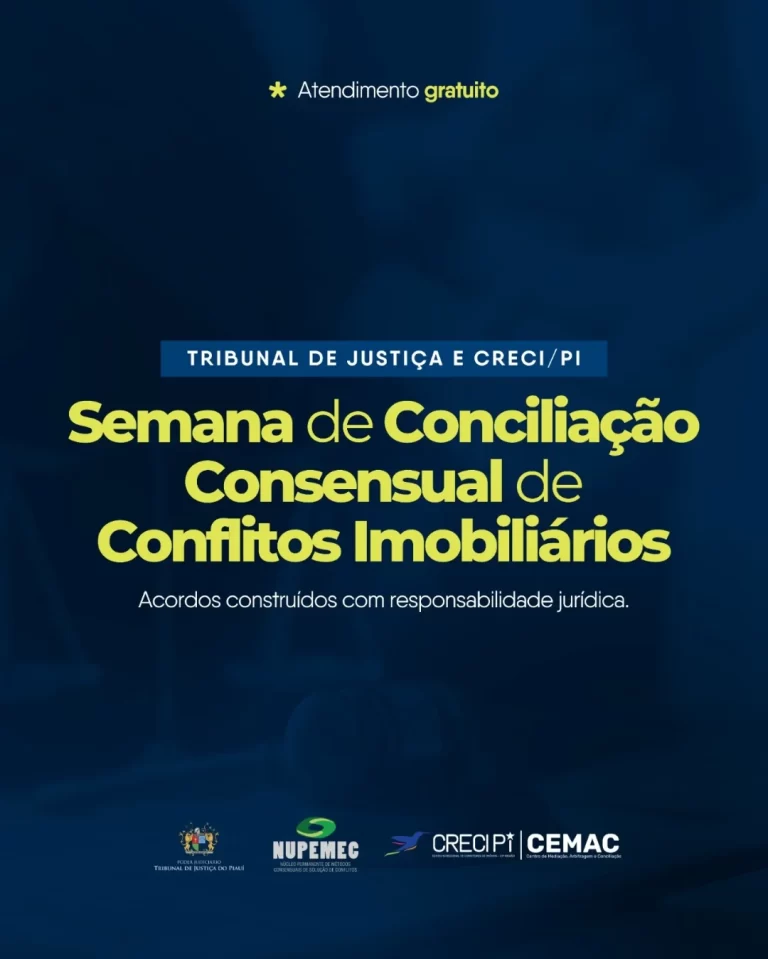 CRECI-PI e TJ-PI promovem Semana de Conciliação Consensual de Conflitos Imobiliários com mutirão de atendimentos gratuitos O Conselho Regional de Corretores de Imóveis do Piauí...